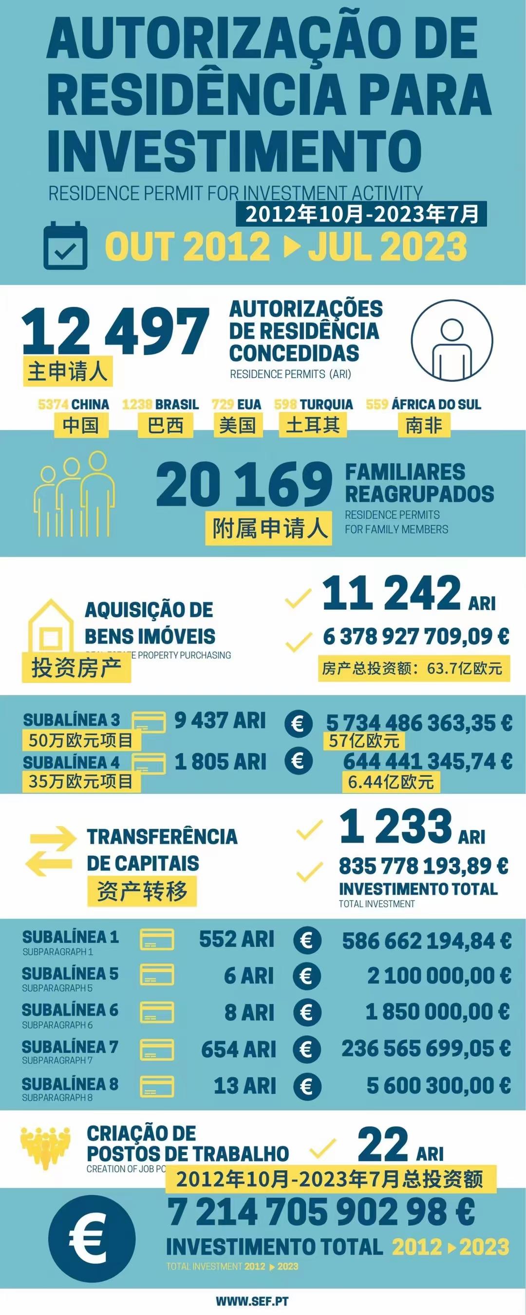 葡萄牙2023年7月黄金签证数据出炉