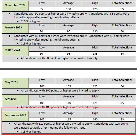 本次筛选,受邀者的最低分为105分,最高分为140分,平均分为115分。值得注意的是,此次,110分或以上的候选人(无英语)被邀请申请,105分的候选人(满足“英语成绩达到CLB6或更高”的条件)被邀请申请。在每一次的筛选中,在世贸通专业团队的帮助下,世贸通都有客户成功被选中。这也再次证明了世贸通的专业与实力。