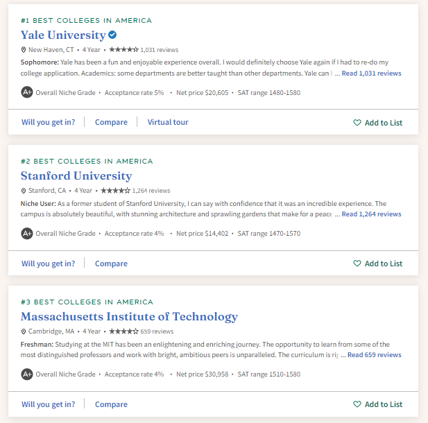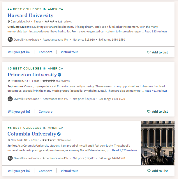 NICHE起初是由卡内基梅隆商学院学生创办,目前已经发展成为一个提供全美K-12学校、高等院校、城市社区和公司企业信息的线上数据资源机构。NICHE排名深受美国学生青睐,是因为排名数据不由任何大学提供,而是根据最值得信赖的大数据整合而来(如:美国教育部、人口普查局、联邦调查局等数十个公共数据源)结合其网站用户评价和反馈内容评估大学表现。