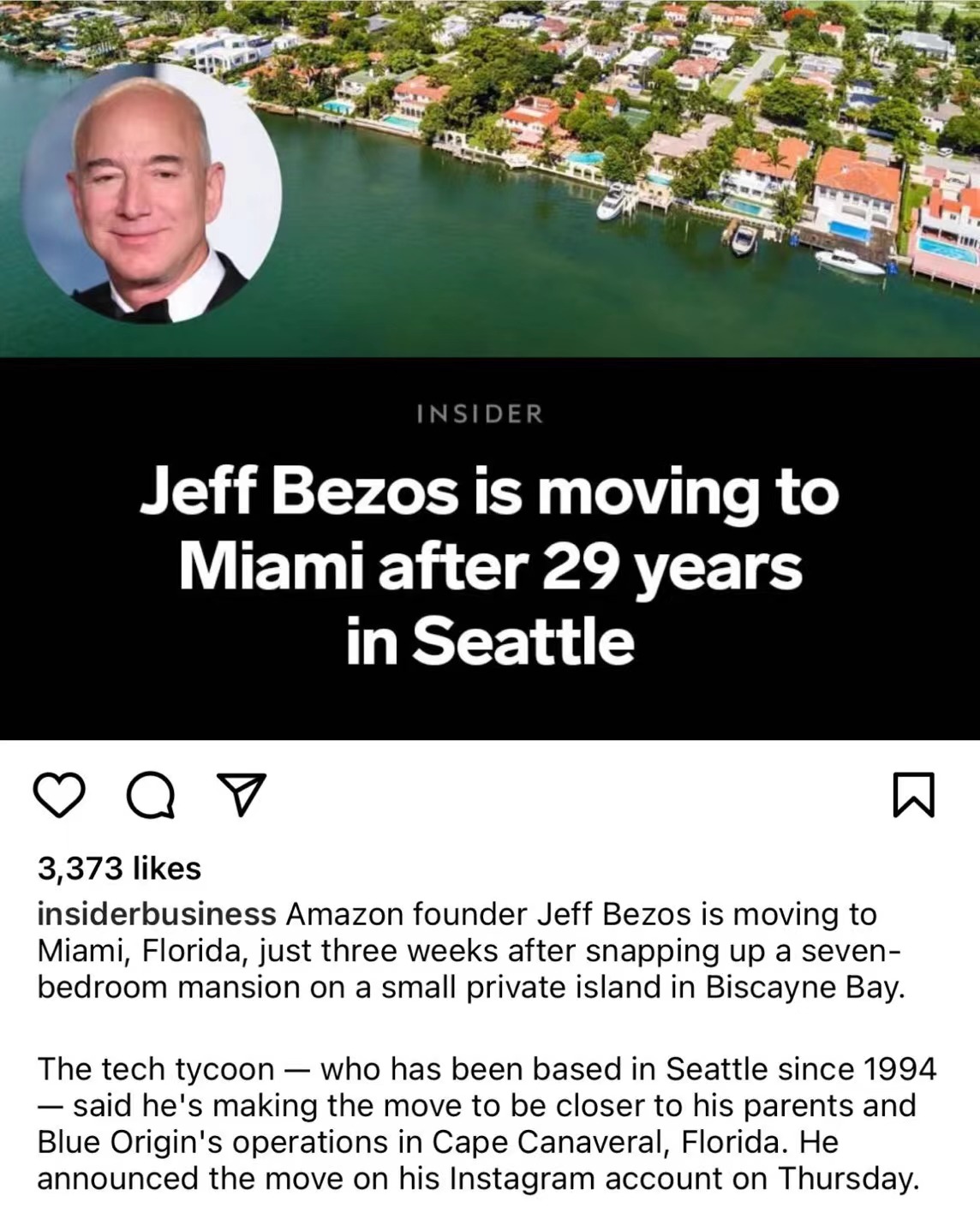 近日,亚马逊创始人兼首席执行官贝佐斯(Jeff Bezos)宣布,他将从西雅图搬到阳光之州——佛罗里达州。根据彭博亿万富翁指数,贝佐斯目前是全球第三富有的人。