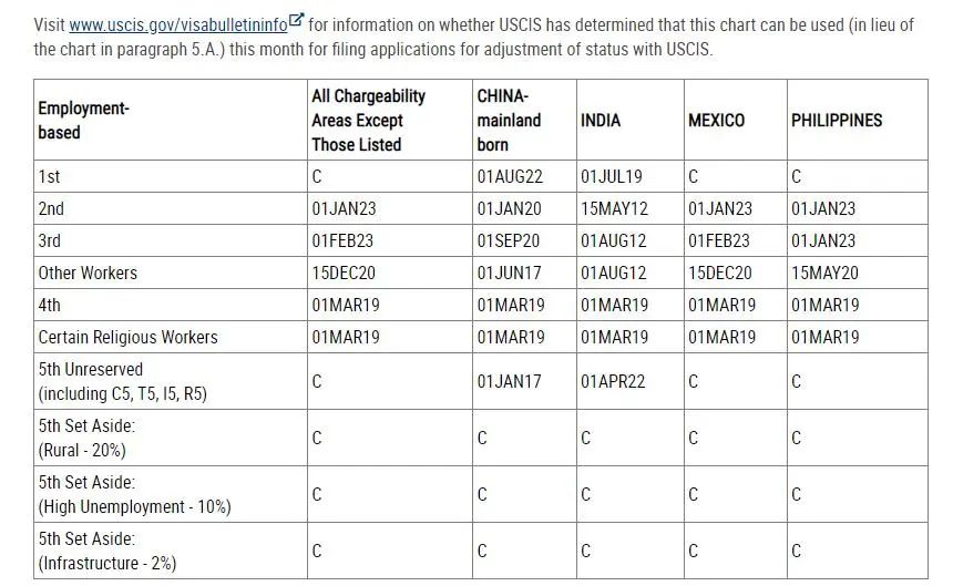 B表:Dates For Filing Of Employment-Based Visa Applications