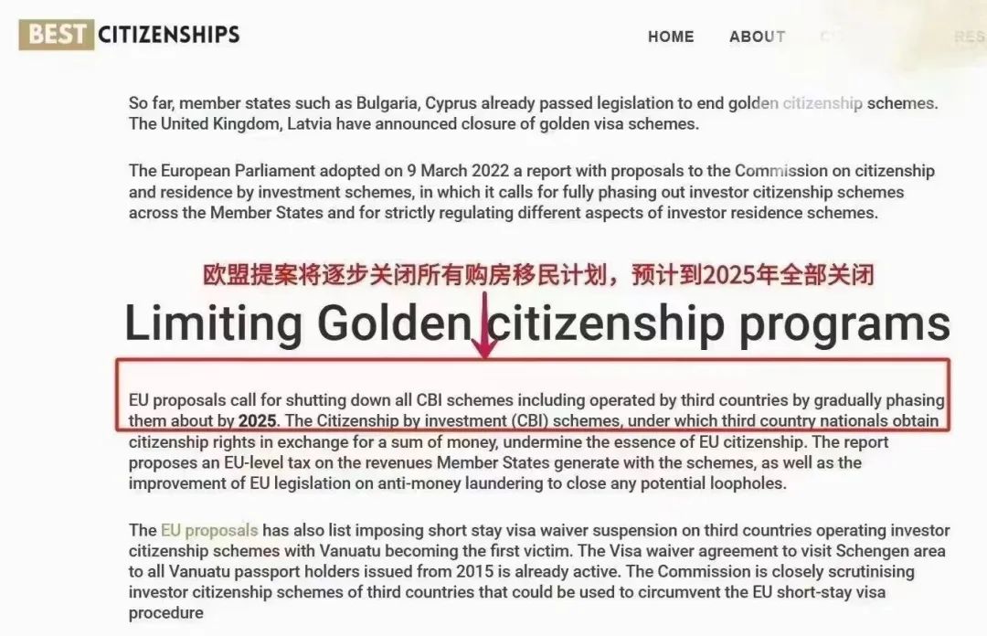 近年来,欧洲有关“投资移民计划”或“黄金护照计划”的废除问题一直争论不断。近日,欧盟议会已提议,将在2025年关停投资移民政策。