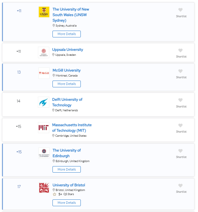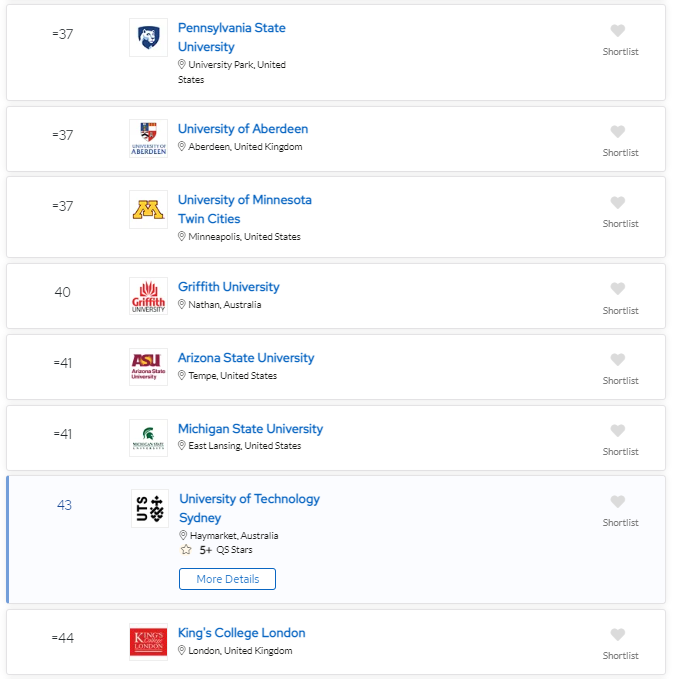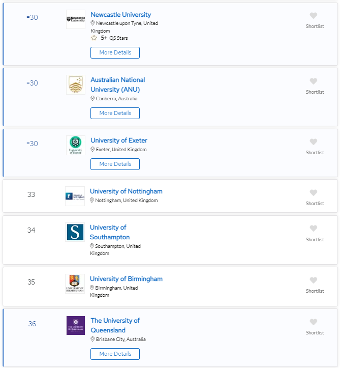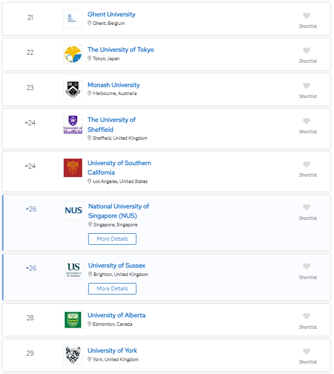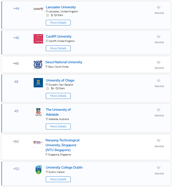 2024 QS可持续发展大学TOP 50
