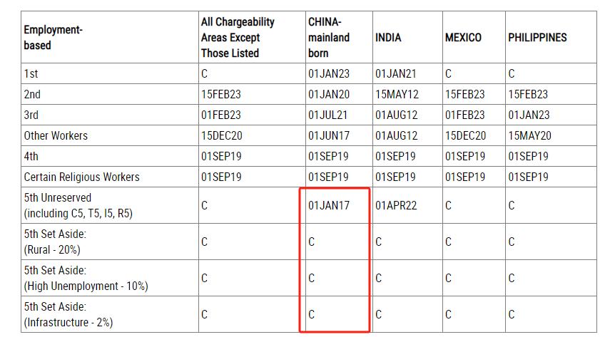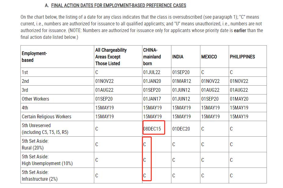 A表:Final Action Dates For Employment-Based Preference Cases