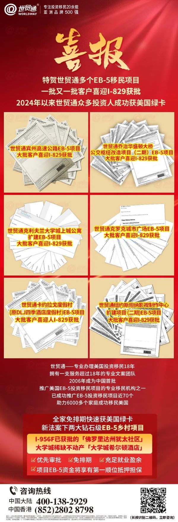 世贸通源源不断的获批案例、项目进展顺利以及项目投资人收到还款等一系列消息,足以证明移民美国,世贸通移民集团和世贸通优质项目值得您选择。