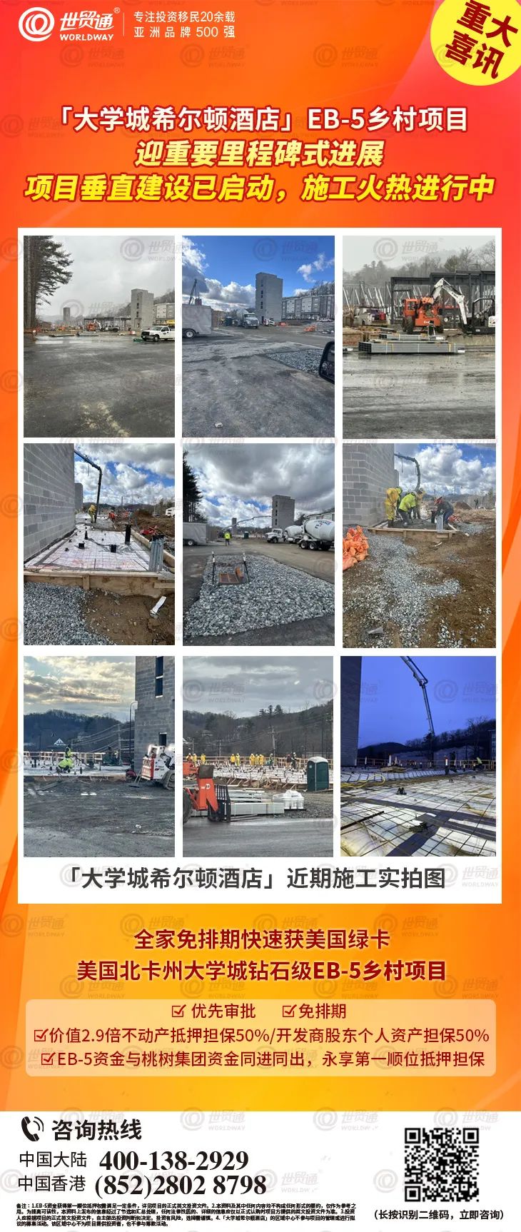 由世贸通担任大中华区独家代理的「大学城希尔顿酒店」EB-5乡村项目(详情点击链接:美国实地考察:揭秘EB-5项目真相),具有优先审批、免排期、价值2.9倍不动产抵押担保50%/开发商个人资产担保50%、EB-5资金与桃树集团同进同出,永享第一顺位抵押担保、大学城不可复制稀缺地段、最短投资期仅3年、同时符合“乡村TEA”和“城市高失业率TEA”资格等多重优势,项目全球仅限25席,名额不多,有意向者认购需从速!