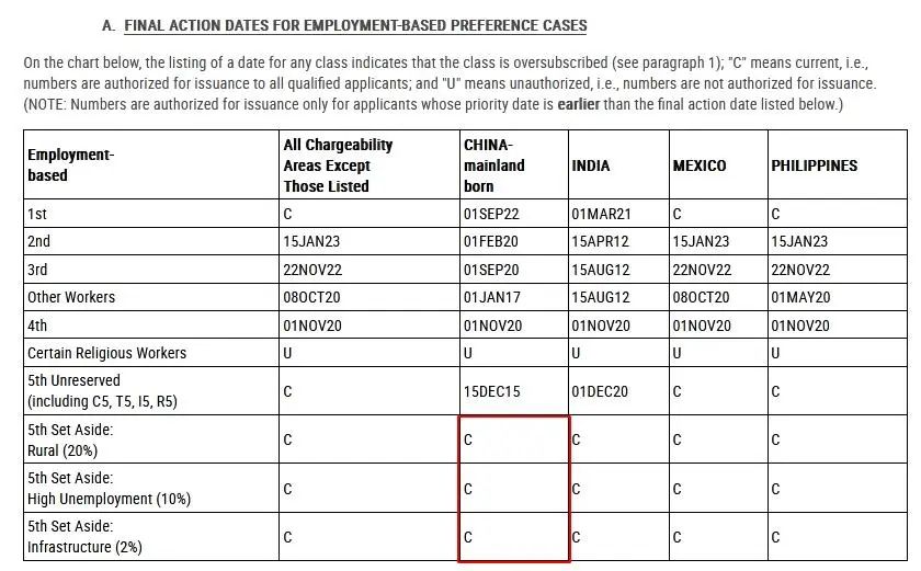 A表:Final Action Dates For Employment-Based Preference Cases