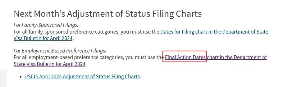 美国国务院签证办公室已正式公布:2024财年第七个月即2024年4月移民签证美国投资移民EB-5签证公告牌。