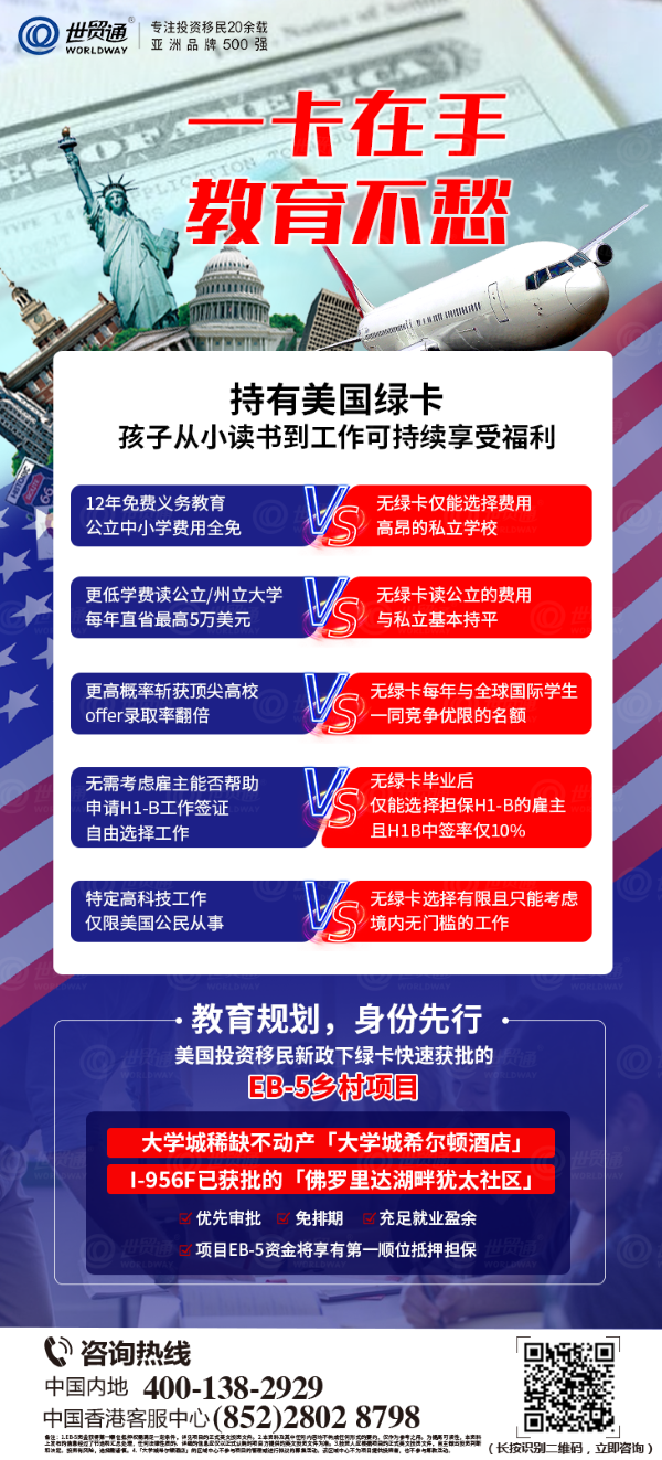 作为亚洲品牌500强、专注投资移民20余载的世贸通集团,聚焦客户需求,洞悉市场趋势,在业内提出“2024教育规划年”(请点击链接)的概念,并将其确定为2024年年度主题!相信在与美国乃至全球各顶尖院校的不断交流合作下,世贸通集团将持续更好的为中国投资者及家长们提供理想、完善的子女身份规划、教育规划解决方案。