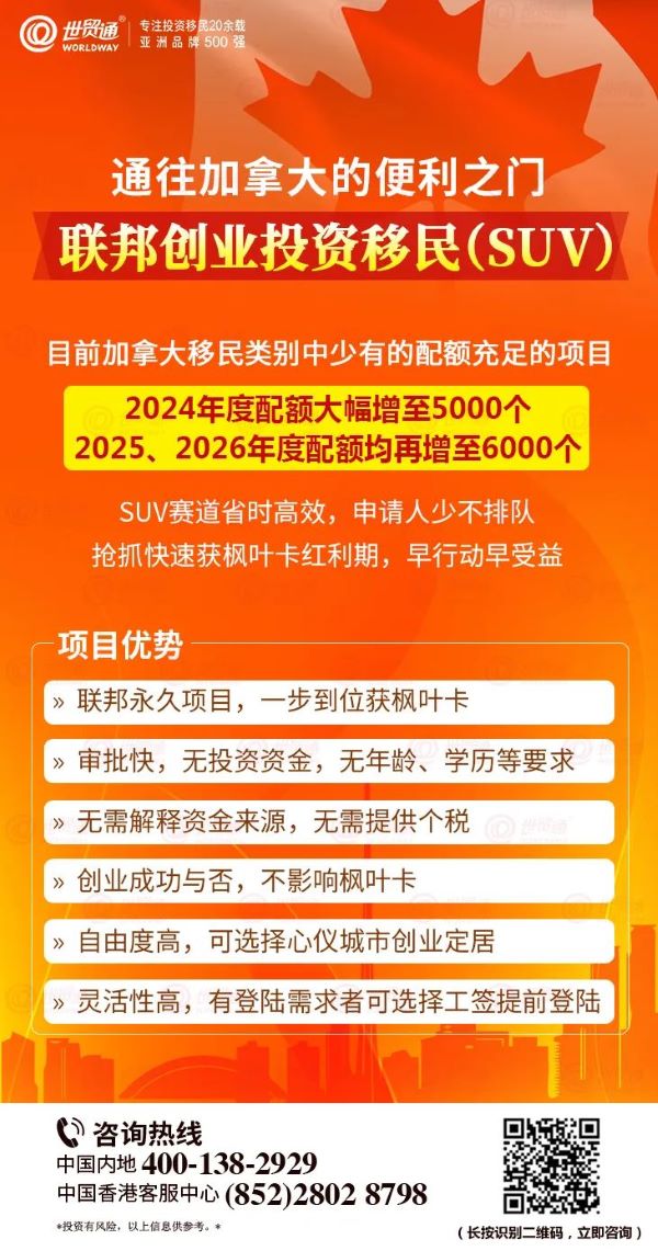 加拿大长久以来一直是中国人移民的热门选择。然而,今年加拿大移民政策频繁变政,或提高门槛或削减配额,将许多人直接拒之门外。在这样的形势下,加拿大联邦创业投资移民(SUV)项目却异军突起,正迅速成为市场关注的焦点,被全球投资人疯抢!