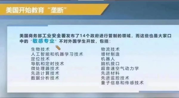 此前,美国商务部工业安全署发布了14个政府进行管制的领域,而这些也是大家口中的“敏感专业”,不对外国学生开放。可见,拥有身份的重要性不言而喻!