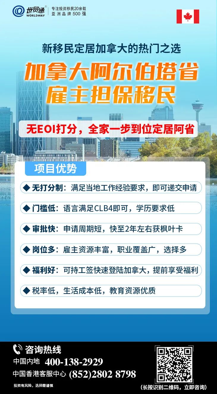 对于有意向移民阿省的投资者而言,加拿大阿省雇主担保移民是不错的选择!阿省雇主担保移民以无需打分、申请门槛宽松、审批快等众多优势,为投资者提供了快速移民加拿大的便捷途径,备受投资者热捧!
