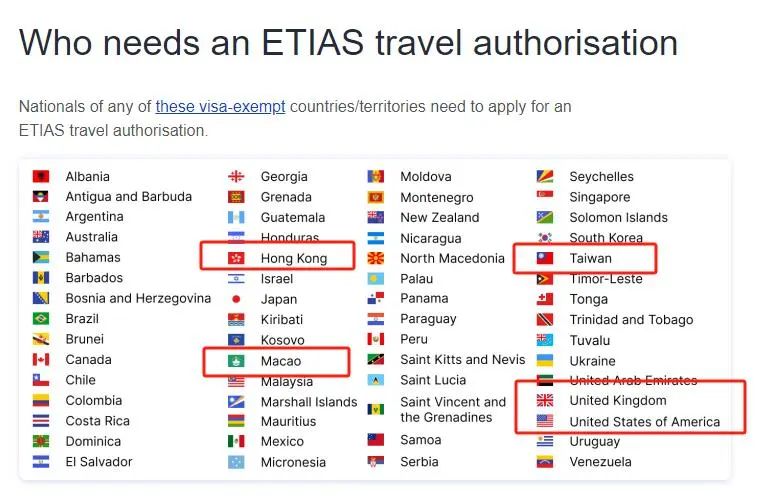 2025年上半年将会执行ETIAS的名单国,包括港澳台地区,英、美、新加坡等59个国家。这些国家或地区的赴欧游客必须在出行前在网上申请欧洲旅行信息和授权系统。