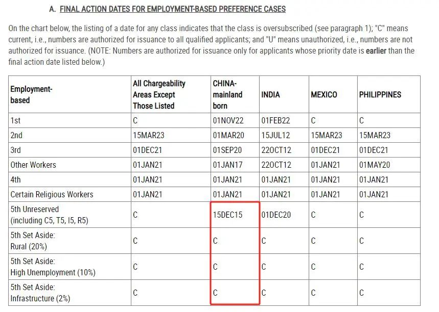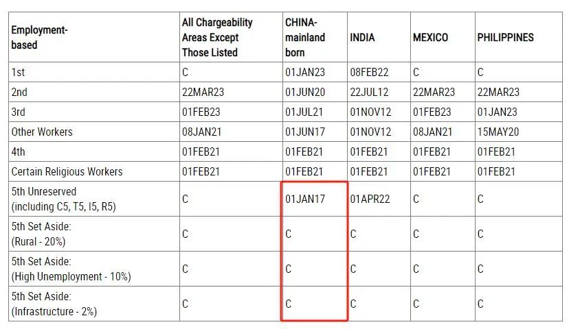 B表:Dates For Filing Of Employment-Based Visa Applications