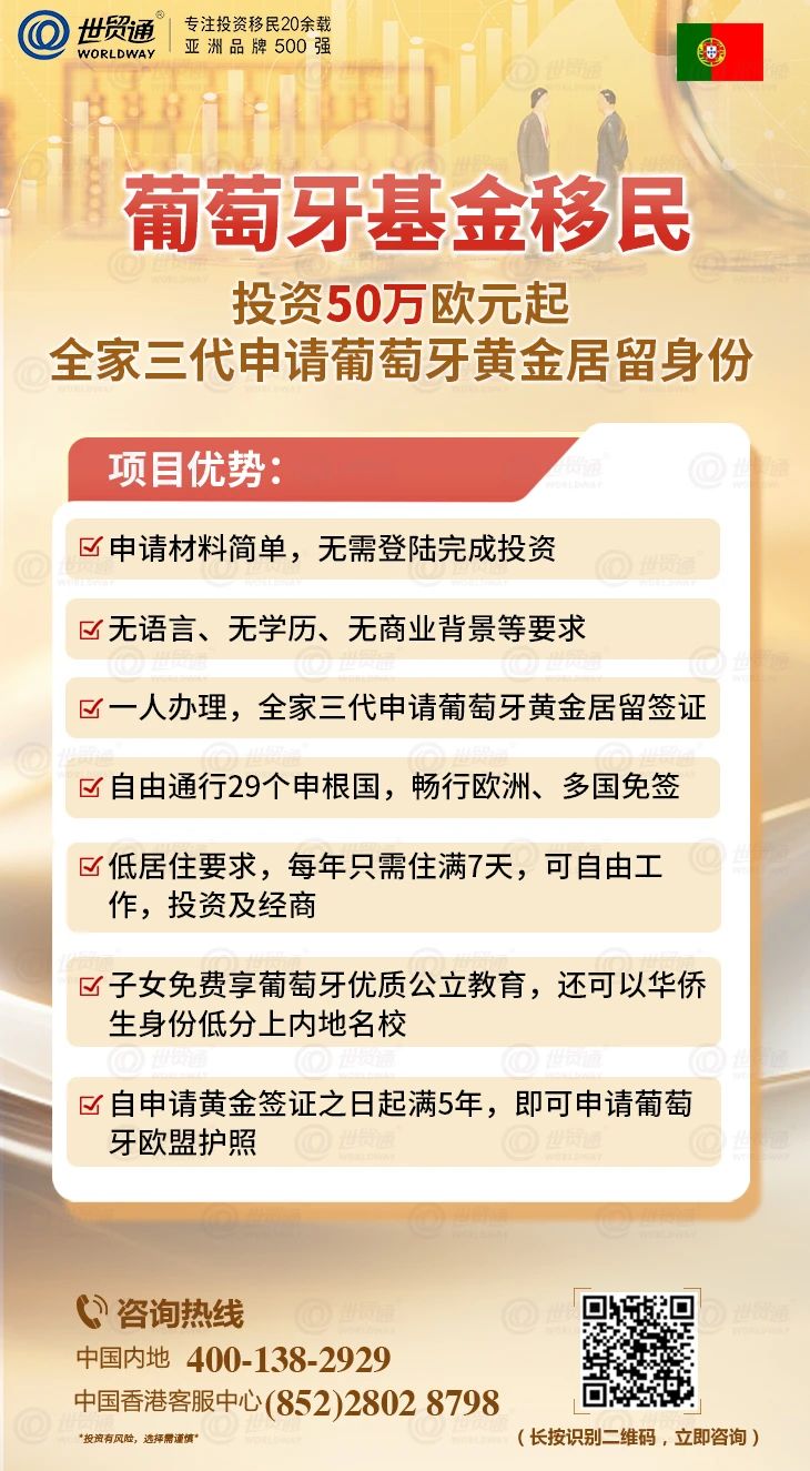 葡萄牙全年气候温和、阳光充足,森林覆盖率35%,PM 2.5为个位数,是欧洲的天然氧吧,非常适宜居住。葡萄牙拥有丰富的旅游资源和多元的文化氛围,连续多年被评为“欧洲较佳旅游目的地”。葡萄牙人喜欢沿着大西洋海岸散步、喝酒、冲浪,享受无尽的悠闲时光,葡萄牙是献给家人享受生活的胜地。