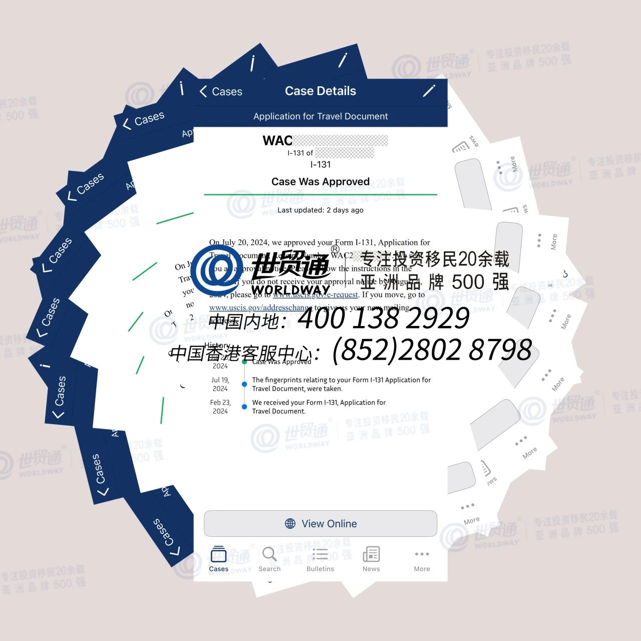 好消息!近日,世贸通一批投资「佛罗里达湖畔犹太社区」EB-5乡村项目的“双递交”EB-5移民客户,陆续收到了旅行许可I-131批准信、工作许可I-765批准信。世贸通此次有部分客户不到5个月就获批了,获批速度非常快。在此,世贸通集团向投资人表示衷心祝贺。