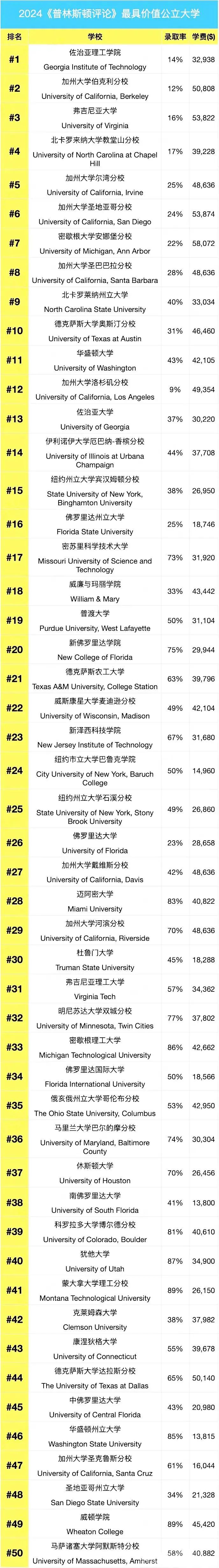 近日,被喻为美国高校版“大众点评”的《普林斯顿评论》,发布了一份涵盖全美的最具价值大学排名,此次评选中包括50所私立和50所公立大学。能进入此排名的学校具有:杰出的学者、可负担的成本(学费低或赠予丰厚的助学金/奖学金)、毕业生就业前景好三个显著特点。