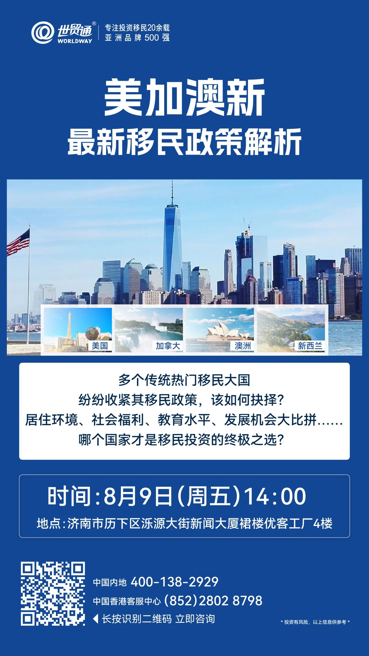 美加澳新最新移民政策解析2024年8月9日• 世贸通• 952 阅读 详询咨询 中国内地: 400-138-2929中国香港客服中心: (852)2802-8798 投资有风险,以上信息供参考 上一篇重磅突发! 加拿大将“封杀”这类移民下一篇零距离•名人面对面 !与美国德州议员见面会