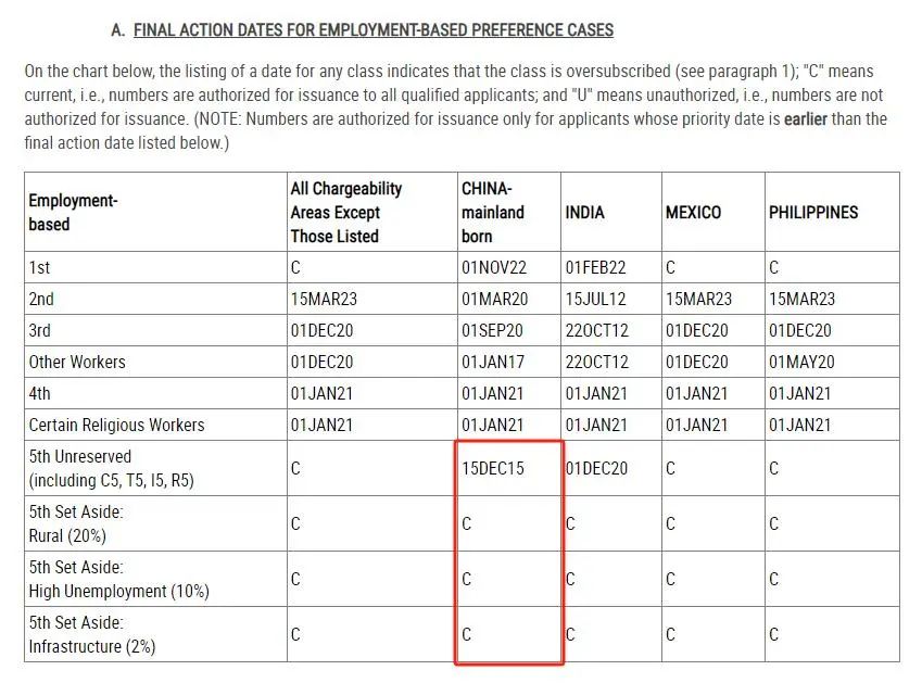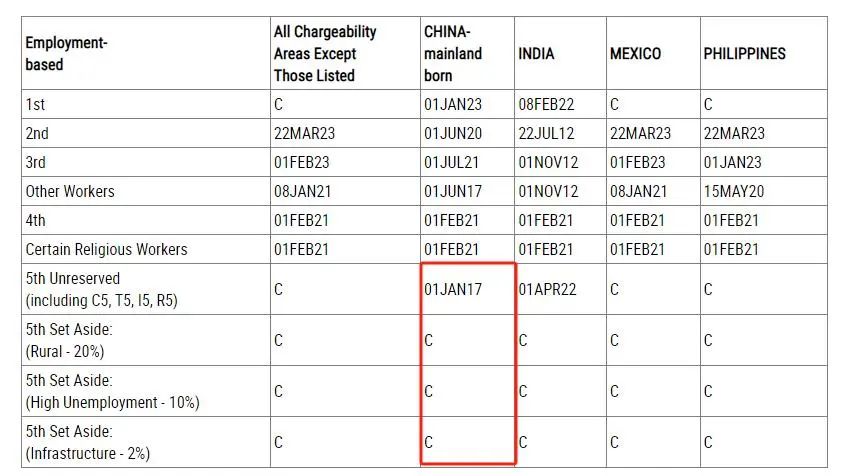 B表:Dates For Filing Of Employment-Based Visa Applications