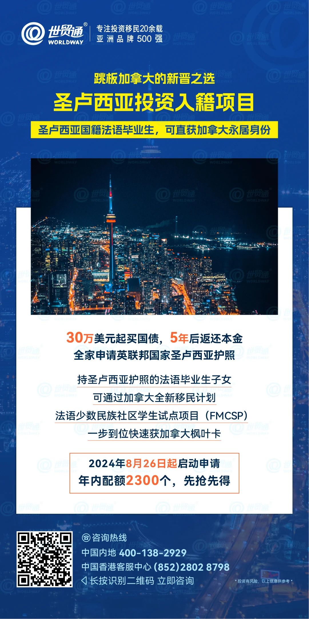 作为英联邦国家投资入籍项目的积极推动者,早在本世纪初就已开展英联邦国家快速入籍项目推广,是最早在中国推广英联邦投资入籍项目的移民公司之一。在英联邦护照项目推广方面,世贸通拥有丰富的经验和众多成功案例。世贸通集团是由圣卢西亚政府授权的专业移民机构,值得您选择。