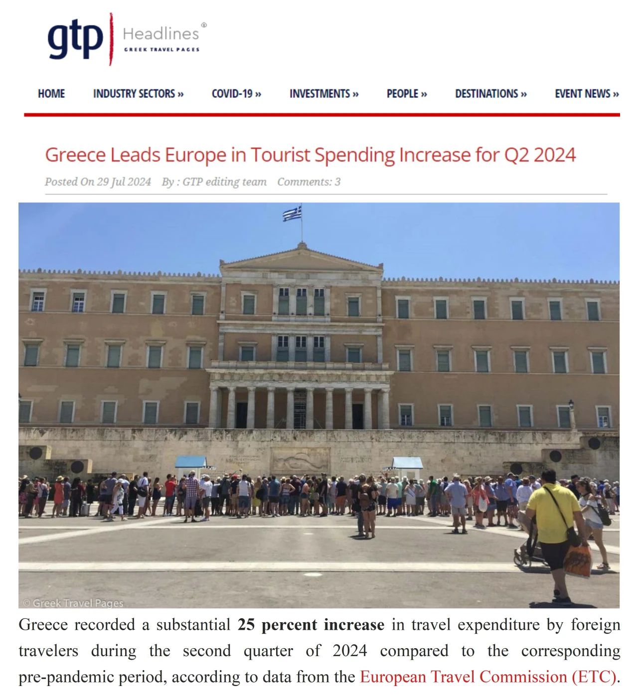 希腊如今是全球游客最喜爱的目的地之一。近日,根据欧洲旅游委员会(ETC)的最新调查报告,2024年上半年希腊在入境游客支出增长方面领跑欧洲,增幅高达25%。地中海地区因其阳光沙滩而备受游客喜爱,希腊尤其突出。