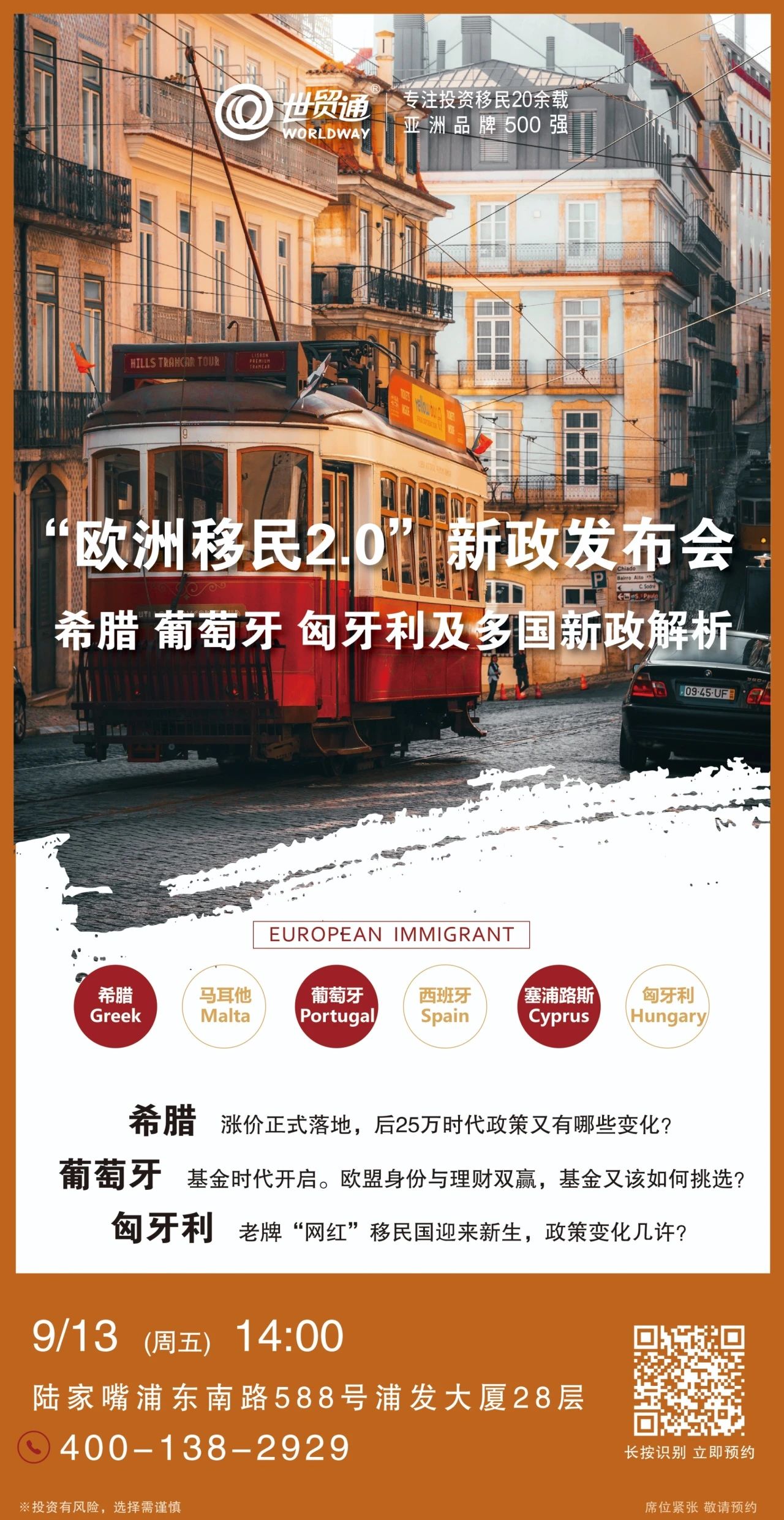 “欧洲移民2.0”新政发布会2024年9月13日• 世贸通• 1.3k 阅读 详询咨询 中国内地: 400-138-2929中国香港客服中心: (852)2802-8798 投资有风险,以上信息供参考 上一篇世贸通一批又一批的客户成功获得I-829批准下一篇子女教育规划,移民这些国家