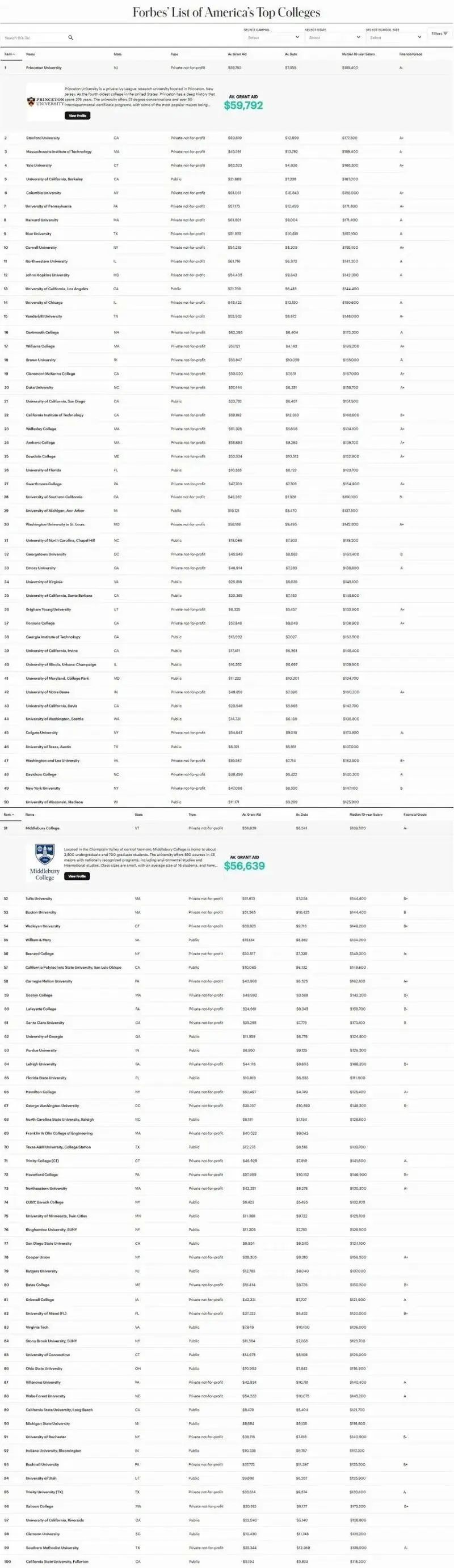 可以看到,这些指标不仅旨在评估学校的学术质量,还关注毕业生的长期发展。福布斯是举世闻名的商业杂志,其每年推出的世界亿万富豪排名都能引发全球的目光聚焦。作为商业杂志,它在进行排名时,标准自然是建立在商业价值以及投资回报率之上的。对于那些关注性价比和投资回报的学生而言,《福布斯》的美国大学排名就具有较大的参考价值,从而做出最符合自身需求的选择。