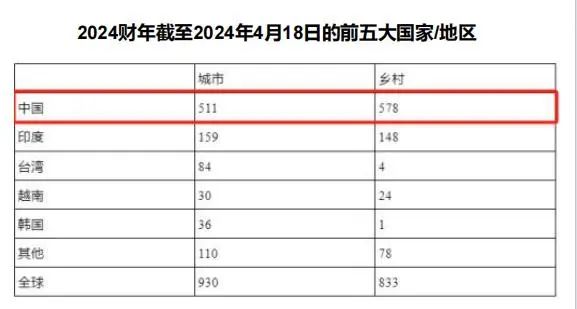 从2024财年起,中国投资人申请乡村项目的数量已经超过城市项目。