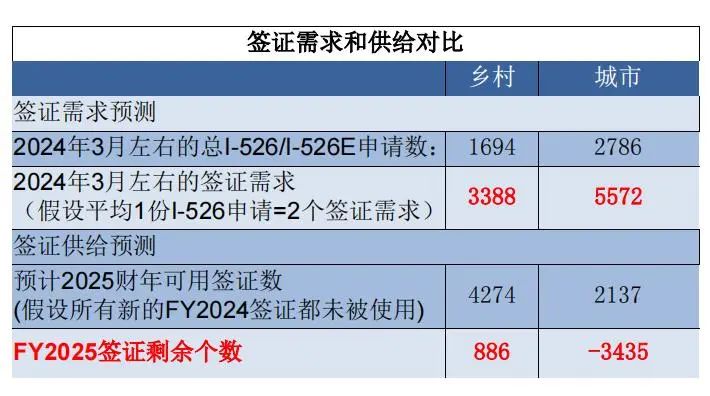 EB-5乡村项目配额充足;城市项目配额不足,面临严重排期