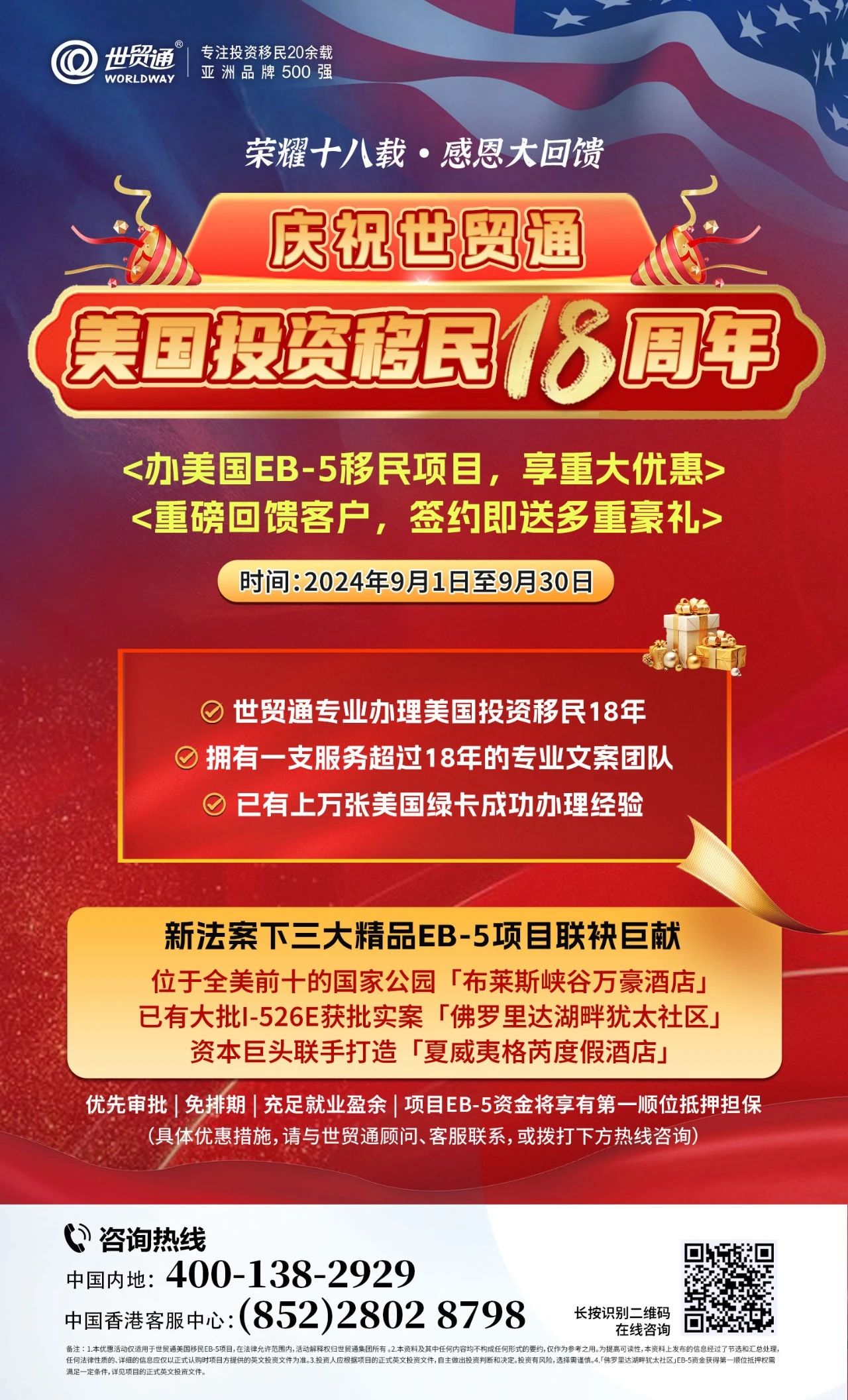 目前,市面上热销的3大精品EB-5项目,由世贸通担任大中华区独家代理的,位于全美前十的国家公园「布莱斯峡谷万豪酒店」和已有大批I-526E获批实案的「佛罗里达湖畔犹太社区」,以及由资本巨头联手打造的「夏威夷格芮度假酒店」,都是经过世贸通集团层层筛选、严格把关后的优质EB-5乡村项目,是您快速移民美国的上佳选择。