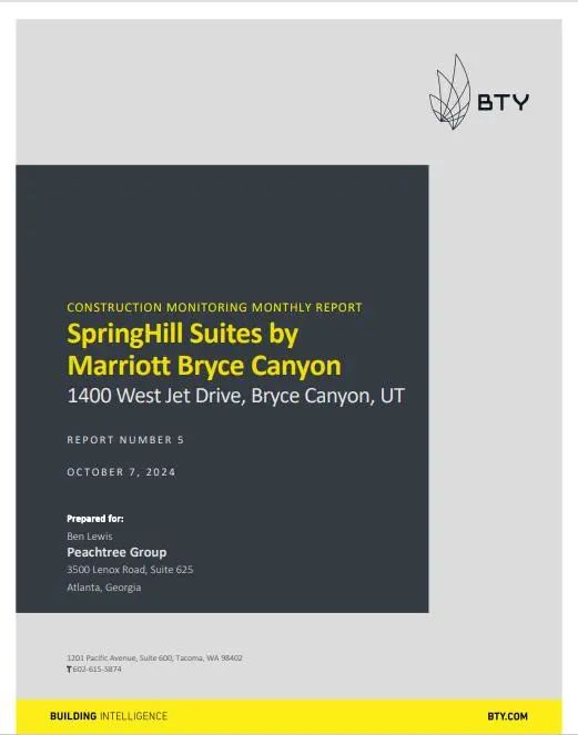 该报告由独立第三方机构BTY进行的例行现场考察,每个月都会出具一份。此次报告详细记录了2024年10月1日现场考察情况,并重点描述了酒店四层的施工进展。同时,截至2024年10月1日,项目完成投资人总就业目标的约40%。