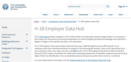 留学移民美国的征途中,长期合法身份已然成为最为棘手的“痛点”,而H-1B签证则是一道难以回避的关键关卡。对于留学生而言,毕业后想要继续在美工作并谋求长远发展,首先要获得一份工作录用通知,其次要保证雇佣您的公司有资质提供担保,并且愿意为您担保H-1B抽签的机会。只有抽中,您才能在美国合法工作。如今,雇主担保情况风云变幻,这留美的路上又多了个大路障!近期,美国移民局(USCIS)首次公布了2009财年到2024财年(第4季度)的H1B雇主名单!详细列出500家有雇主担保资格的企业,维度细分到年份、公司、州甚至城市。