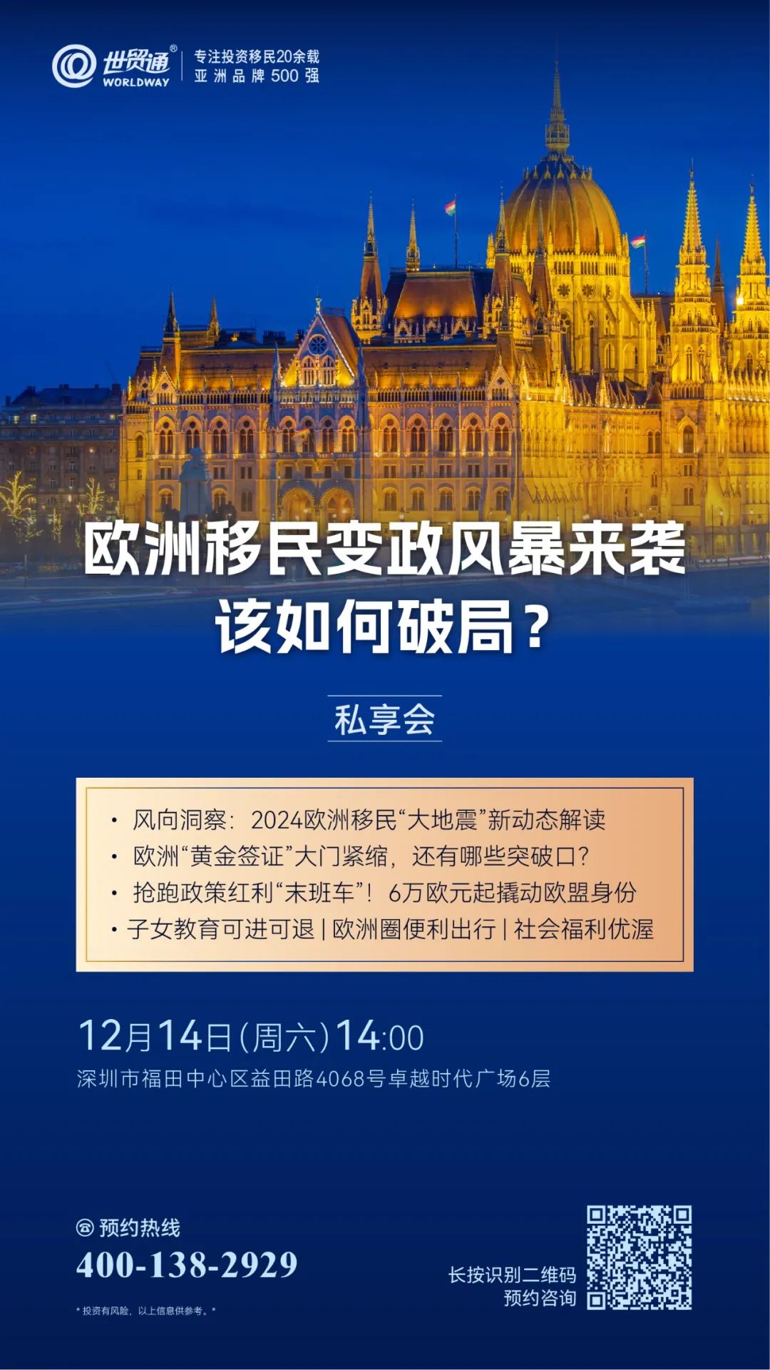 欧洲移民变政风暴来袭该如何破局?2024年12月14日• 世贸通• 452 阅读 详询咨询 中国内地: 400-138-2929中国香港客服中心: (852)2802-8798 投资有风险,以上信息供参考 上一篇绿卡赋能:揭示在美读书的隐藏特权与未来优势下一篇携手美国移民大律师!世贸通为EB-5投资人提供无忧服务