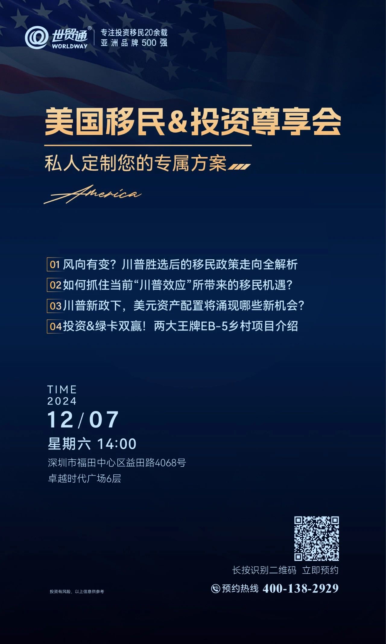 美国移民&投资尊享会2024年12月7日• 世贸通• 443 阅读 详询咨询 中国内地: 400-138-2929中国香港客服中心: (852)2802-8798 投资有风险,以上信息供参考 上一篇EB-5新政助力留美学生快速获绿卡下一篇从留学到留美,这些没有绿卡的人撑不住了……