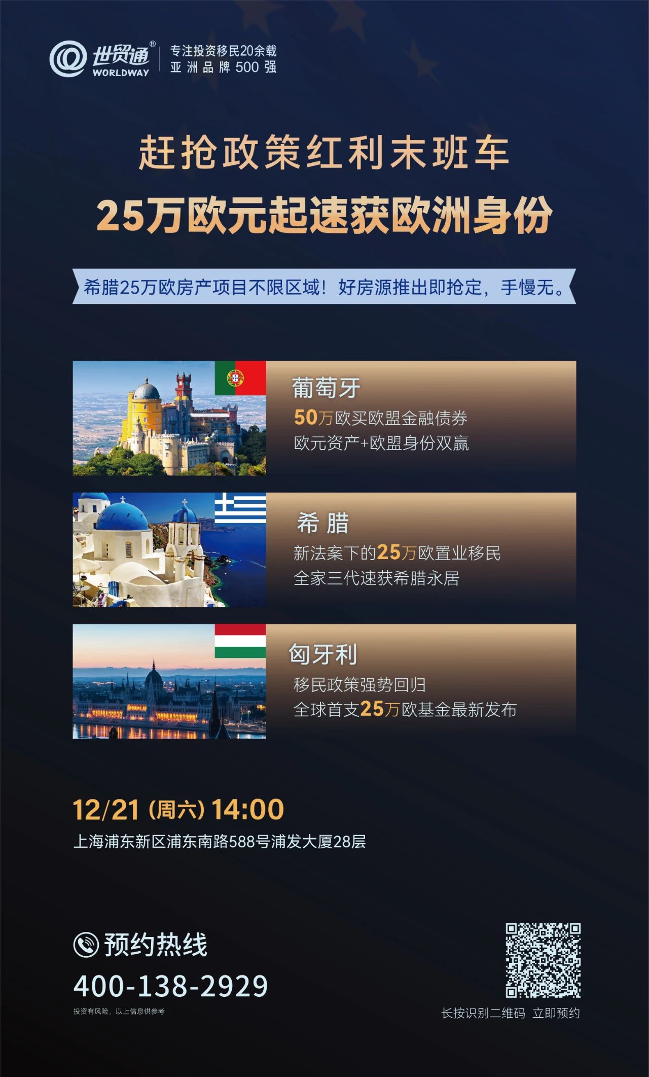赶抢政策红利末班车,25万欧元起速获欧洲身份2024年12月21日• 世贸通• 546 阅读 详询咨询 中国内地: 400-138-2929中国香港客服中心: (852)2802-8798 投资有风险,以上信息供参考 上一篇速看!美国移民局公布工卡重磅新规下一篇揭秘港府续期新规与未来身份规划