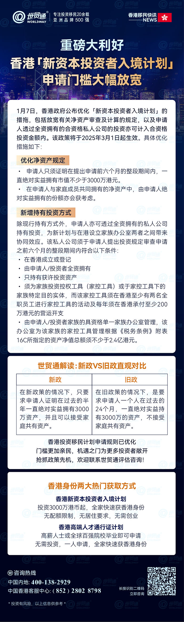 世贸通喜讯连连,获批消息源源不断地传来!近日,世贸通集团众多香港移民客户接连迎来获批的好消息!大批香港高端人才通行证计划客户获批;大批新资本投资者入境计划客户的申请成功批准;大批客户收到香港投资推广署的净资产审查证明书;大批香港优秀人才入境计划客户获批。世贸通集团向投资人表示衷心地祝贺。