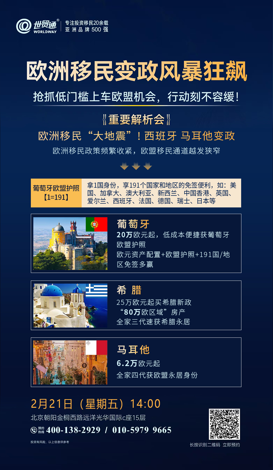 欧洲移民变政风暴狂飙-重要解析会2025年2月21日• 世贸通• 524 阅读 详询咨询 中国内地: 400-138-2929中国香港客服中心: (852)2802-8798 投资有风险,以上信息供参考 上一篇留美身份告急?请打开这个“急救包”下一篇2025快速获绿卡黄金通道深度解析