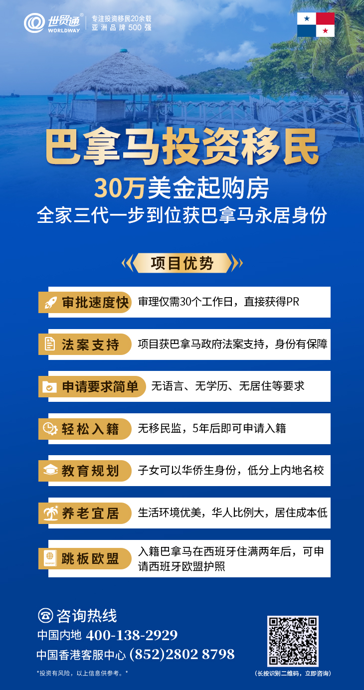 如您有意向移民巴拿马,建议尽快做准备!目前,投资者在巴拿马购买价值30万美元及以上的房产,即可全家三代申请巴拿马永居身份。