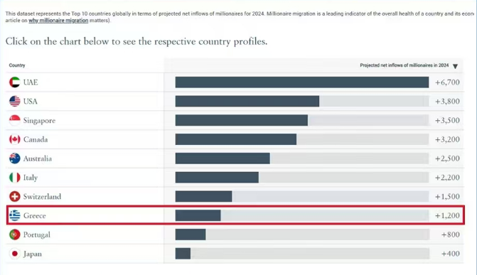 根据《新世界财富》的一项调查,2022-2024年期间,约有1200名百万富翁从世界各地移居希腊,使其成为全球第八大受欢迎的移民国家。