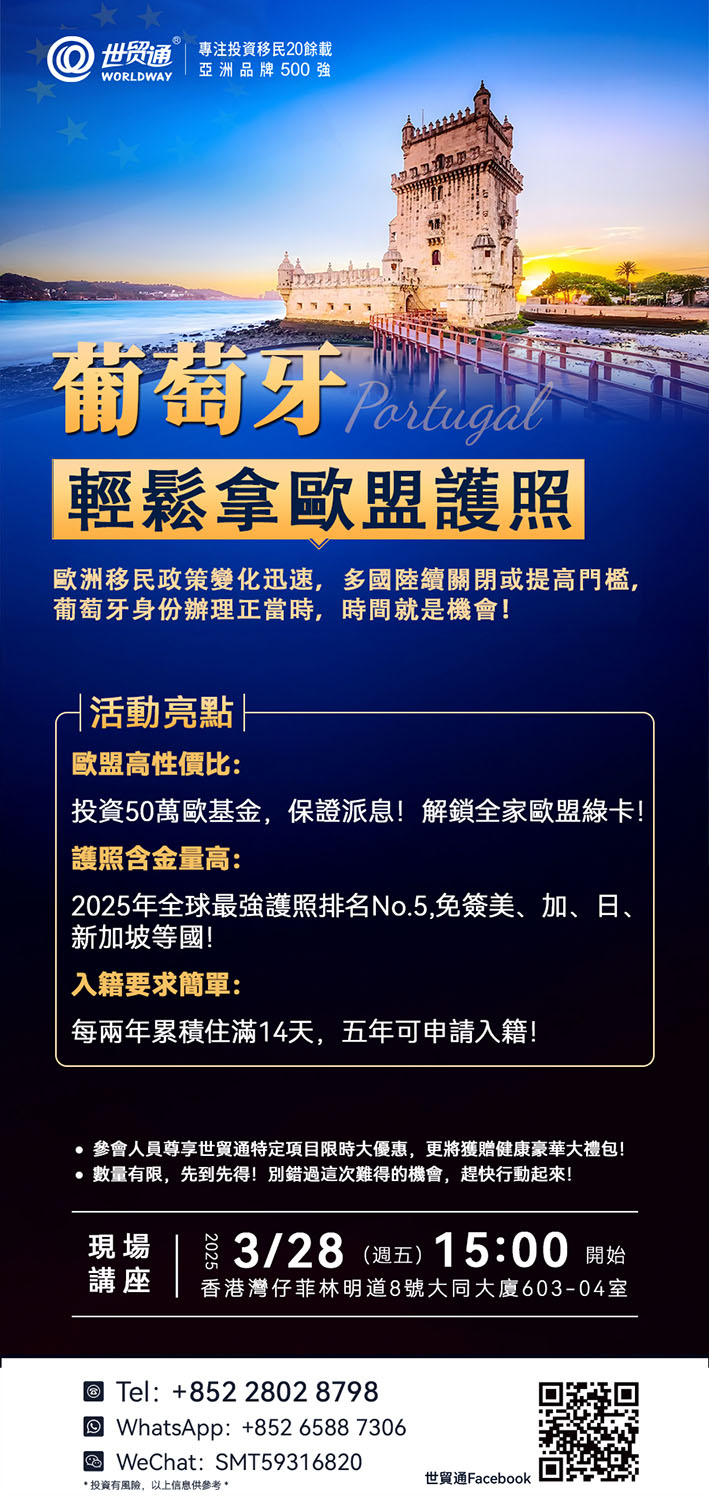 葡萄牙 轻松拿欧盟护照2025年3月28日• 世贸通• 626 阅读 详询咨询 中国内地: 400-138-2929中国香港客服中心: (852)2802-8798 投资有风险,以上信息供参考 上一篇突发:美国暂停处理部分绿卡申请下一篇把握时机 美国投资移民排期