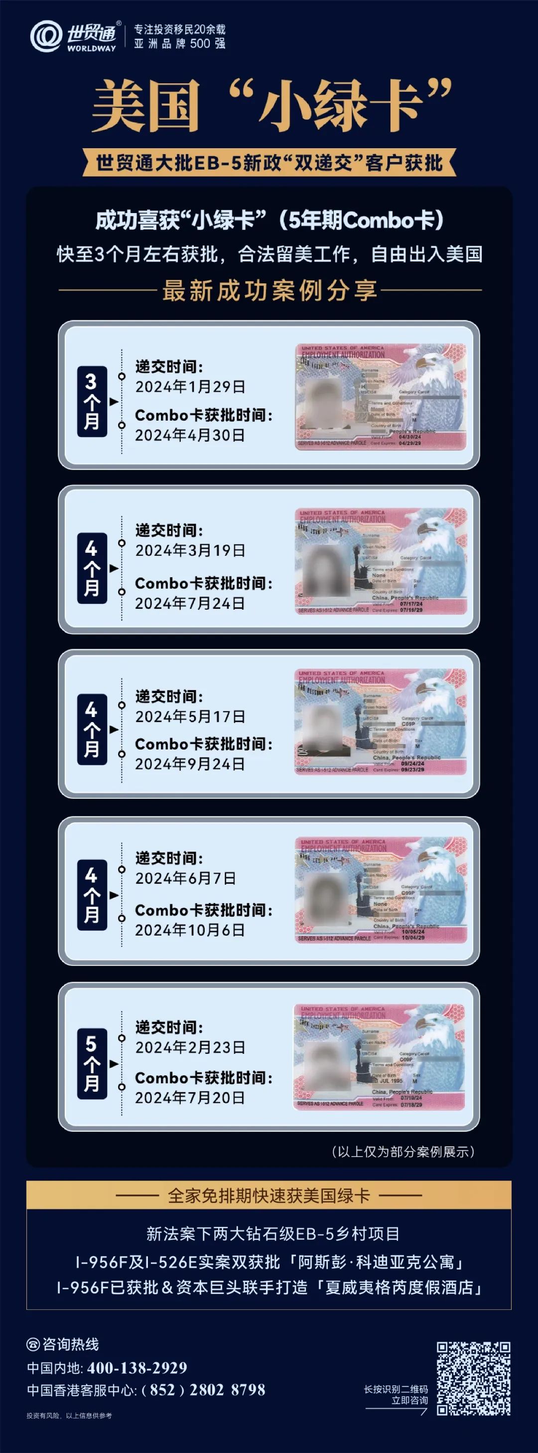 对于孩子已经在美留学的家庭或是计划赴美留学的家庭而言,如果想要留在美国工作生活,并且不受H-1B签证的困扰,不妨提早做好规划:拥有绿卡身份,能学也能留!例如通过美国EB-5投资移民快速获得美国绿卡,选择EB-5预留签证项目,投资80万美金,同时递交I-526E和I-485申请,3个月左右就能拿到Combo卡,等绿卡的期间也不影响出入境,可以合法地在美国居留,学习和工作,无需雇主担保,提前享受准绿卡自由。
