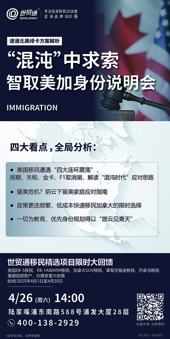 智取美加身份说明会2025年4月26日• 世贸通• 812 阅读 详询咨询 中国内地: 400-138-2929中国香港客服中心: (852)2802-8798 投资有风险,以上信息供参考 上一篇顶级欧盟护照20万欧元起办理快车道下一篇SUV移民解析会