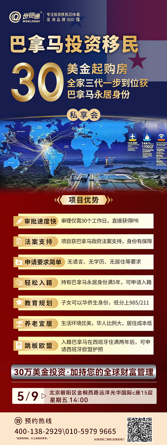 巴拿马投资移民私享会2025年5月9日• 世贸通• 421 阅读 详询咨询 中国内地: 400-138-2929中国香港客服中心: (852)2802-8798 投资有风险,以上信息供参考 上一篇EB-5移民最新情报:数据大揭秘与未来趋势预测下一篇80万美金如何不踩雷?