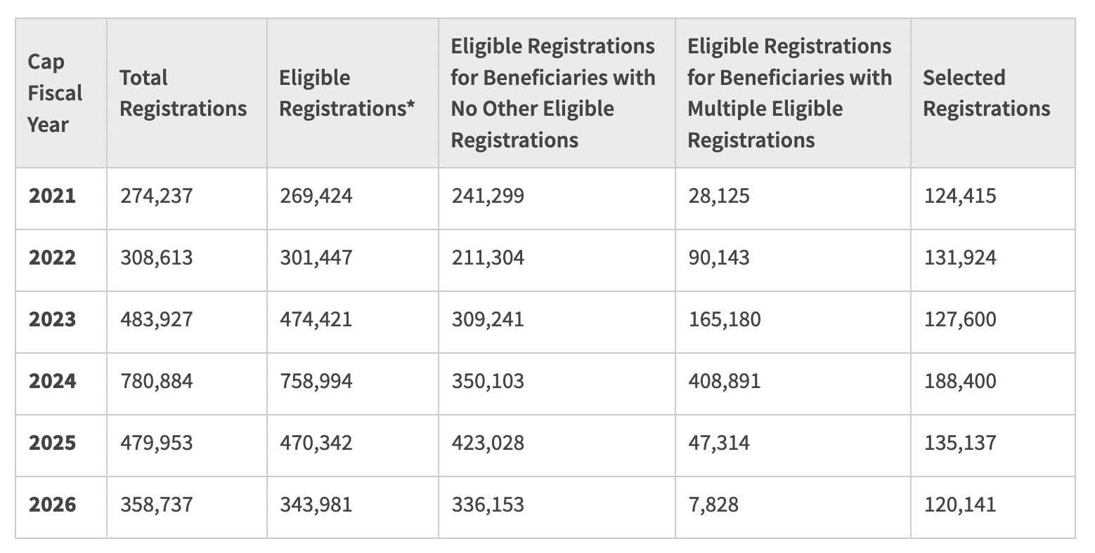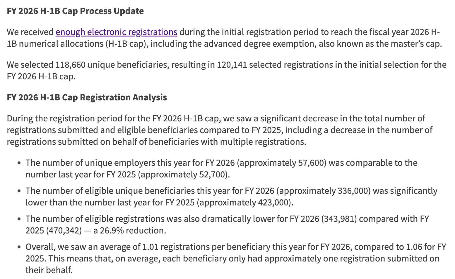 近日,美国移民局公布了2026财年H-1B抽签的数据: