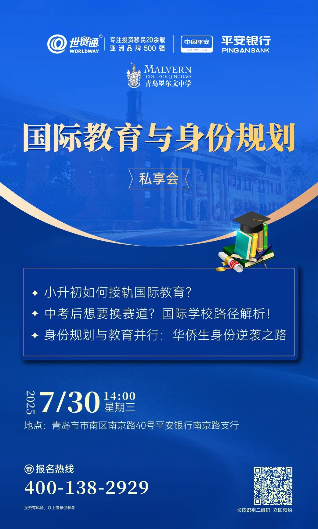 国际教育与身份规划私享会创建时间:2025-07-30 世贸通 742国际教育与身份规划私享会 详询咨询 中国内地: 400-138-2929 中国香港客服中心: (852)2802-8798 投资有风险,以上信息供参考