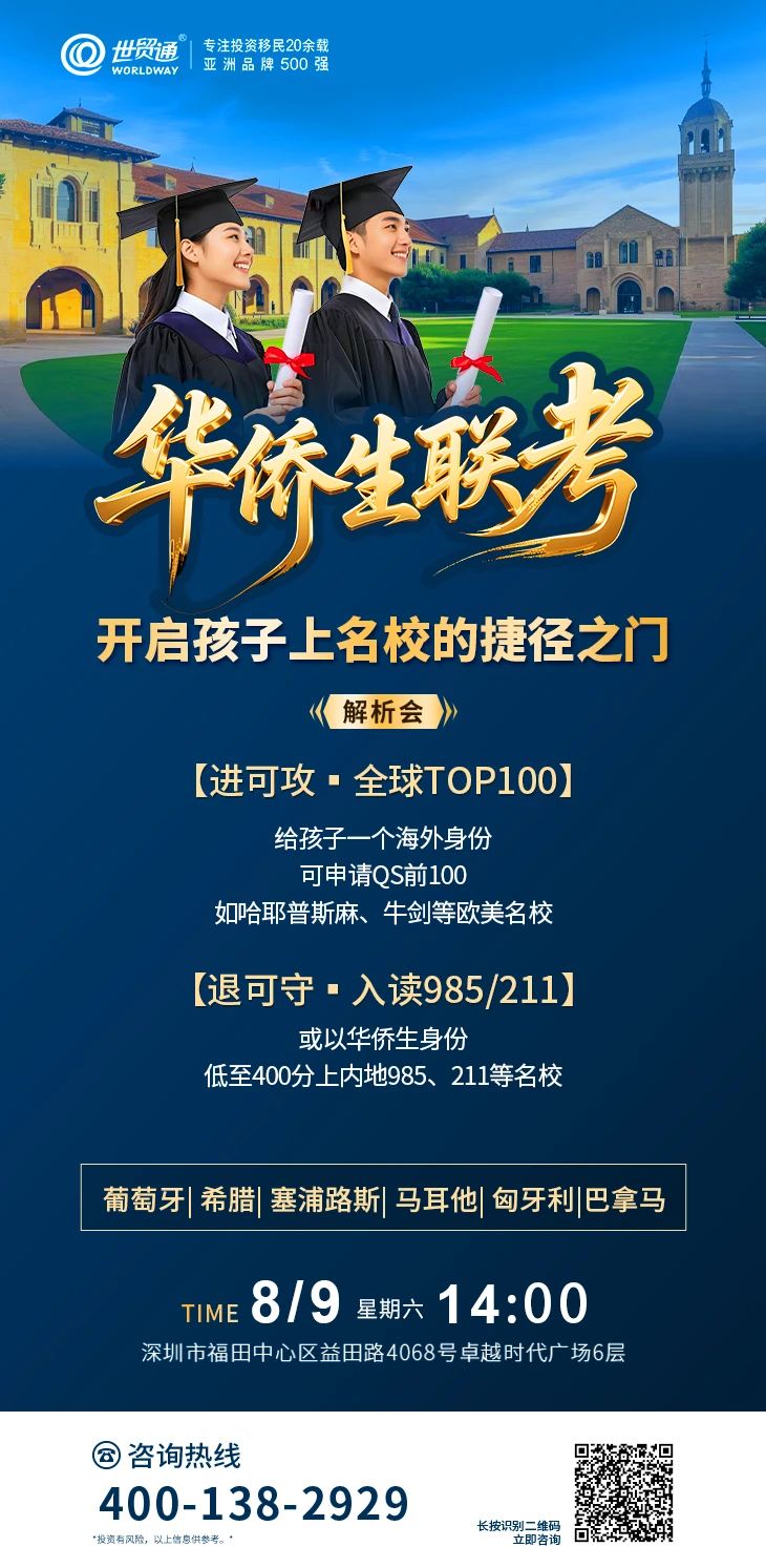 华侨生联考解析会创建时间:2025-08-09 世贸通 712华侨生联考解析会 详询咨询 中国内地: 400-138-2929 中国香港客服中心: (852)2802-8798 投资有风险,以上信息供参考