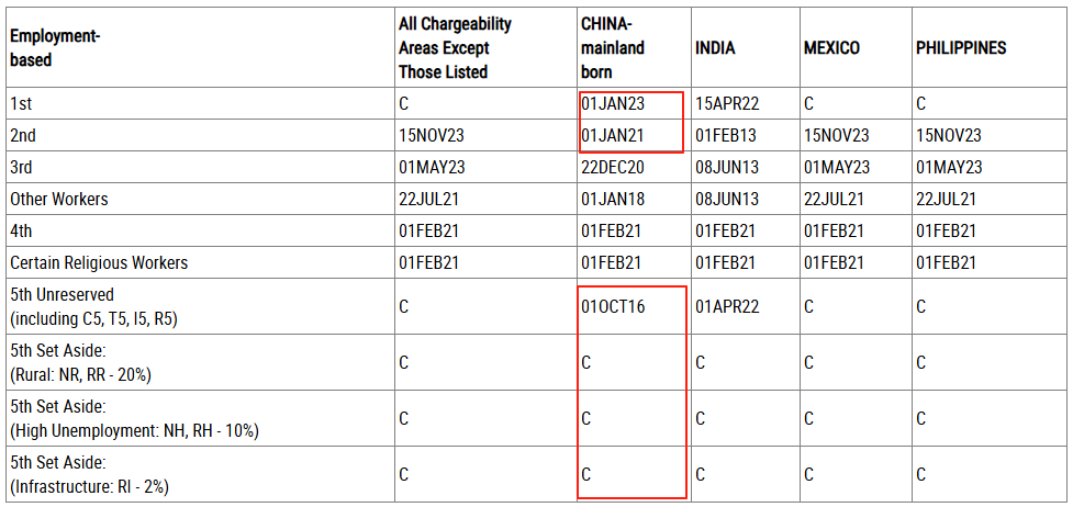 B表:Dates For Filing Of Employment-Based Visa Applications