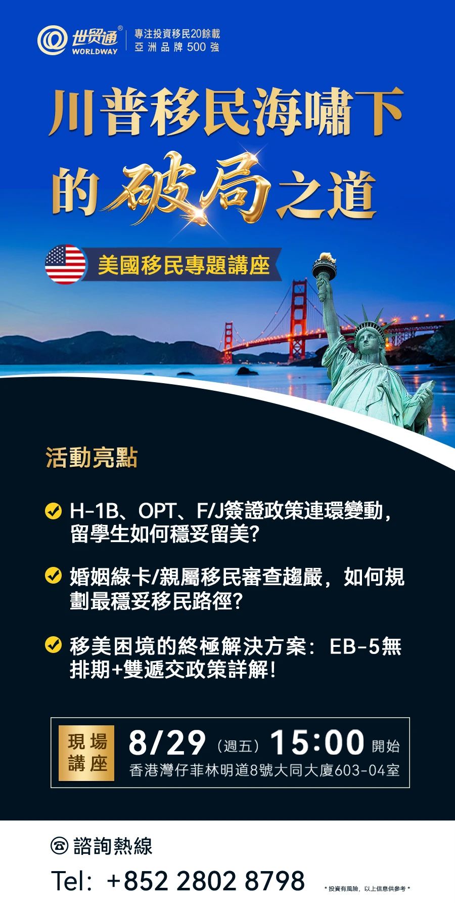 川普移民海嘯下的破局之道!美國移民專題講座创建时间:2025-08-29 世贸通 991川普移民海嘯下的破局之道!美國移民專題講座 详询咨询 中国内地: 400-138-2929 中国香港客服中心: (852)2802-8798 投资有风险,以上信息供参考