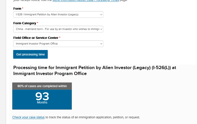 相较于旧法(Legacy I-526):老法案下的中国出生投资人 I-526审理时长为93个月。新法下I-526E13.5个月的审批速度堪称飞速。