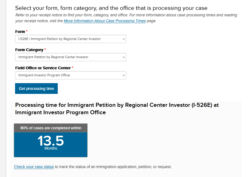 根据最新数据,新法下的I-526E(区域中心项目)申请80%的案例可在13.5个月内审理完毕。